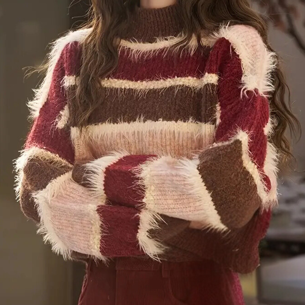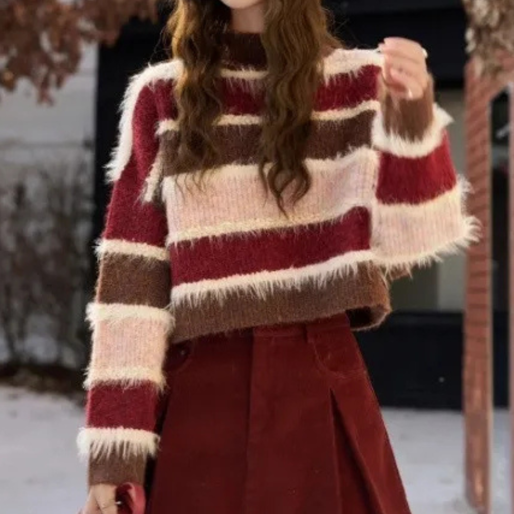De SONORA - Moderne Trui voor Dames geeft een eigentijdse en frisse draai aan je dagelijkse look dankzij zijn opvallende gestreepte patroon en kortere snit.